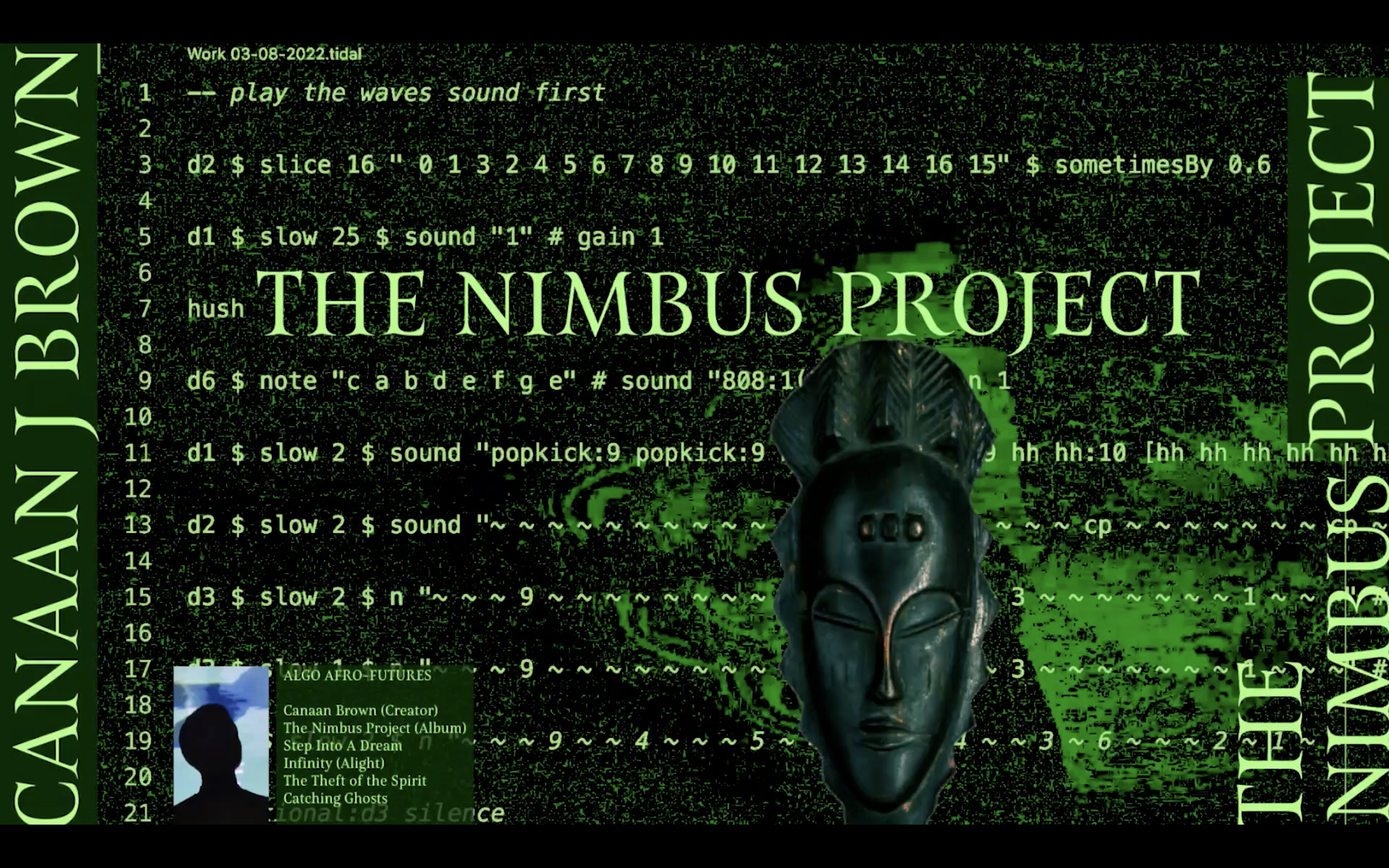 Canaan J. Brown is an artist and designer who uses magical realism, speculative fiction, and storytelling to reframe the histories and futures of the Black experience. Especially concerned with themes of Black excellence, restitution, and freedom, he uses filmmaking, creative writing, and an increasingly interdisciplinary creative practice.